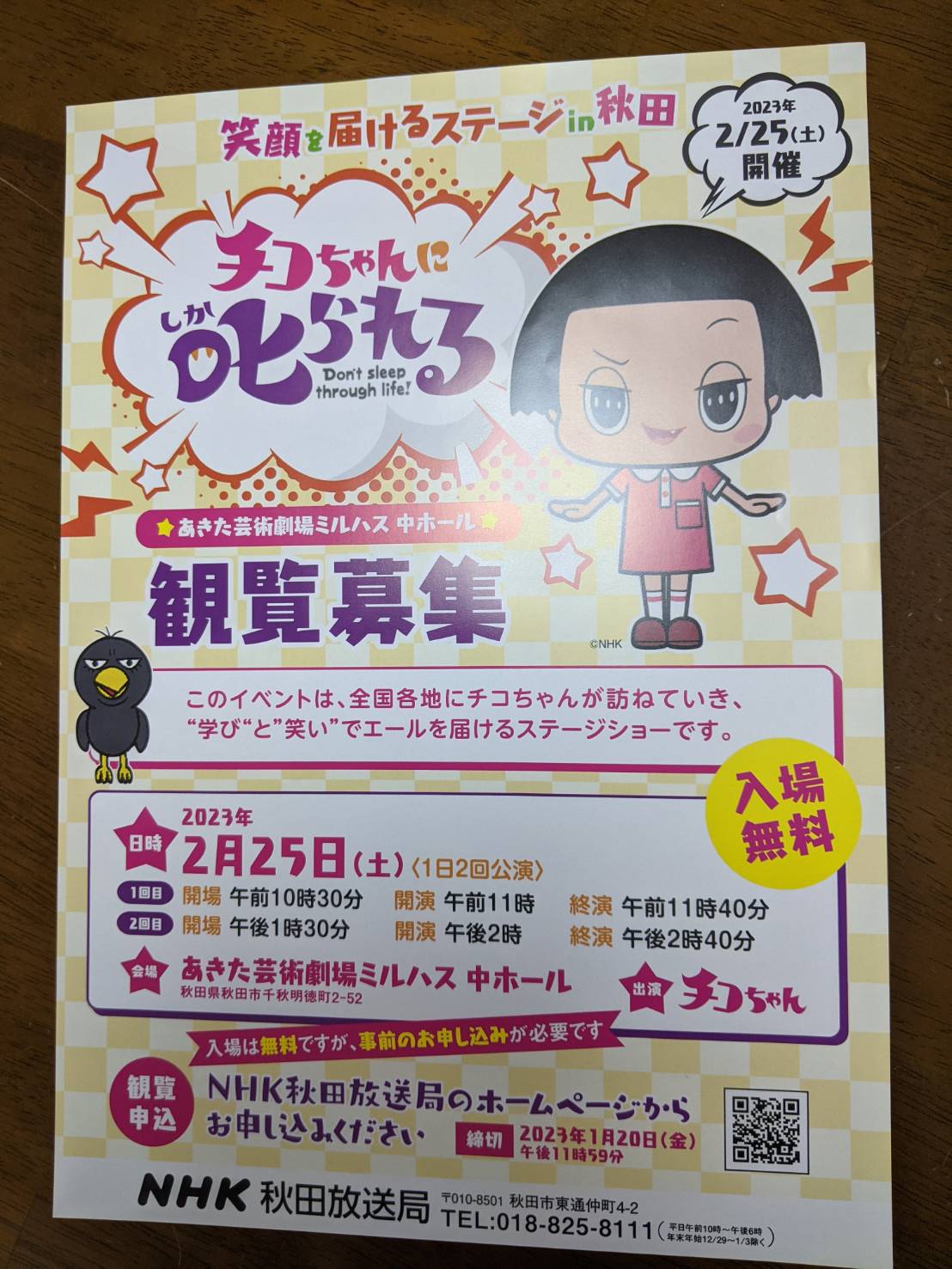 チコちゃん、秋田に来るんですね!!