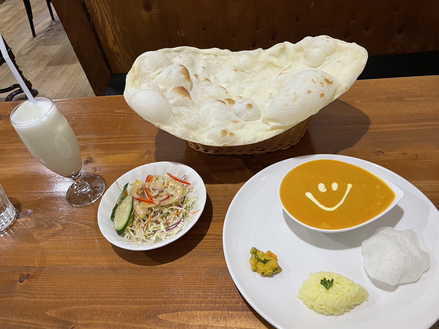 ポカラさんで手作りナンとシーフードカリー食べました。