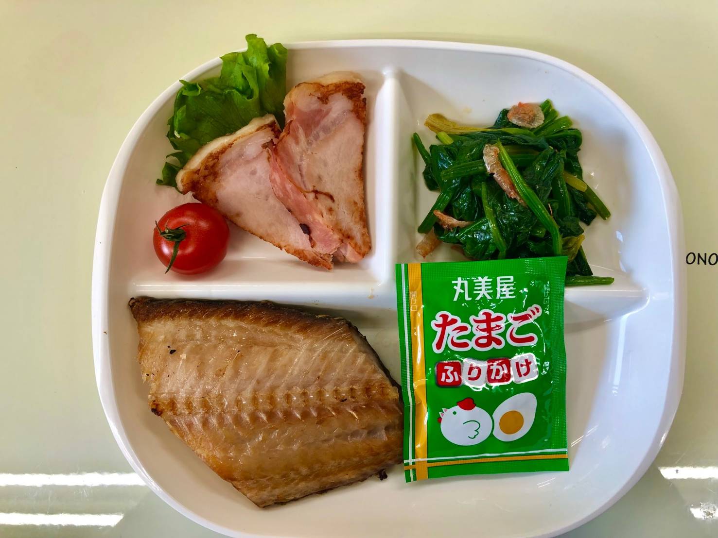 ・魚 ・ハムソテー ・ほうれん草ツナ和え ・ふりかけ