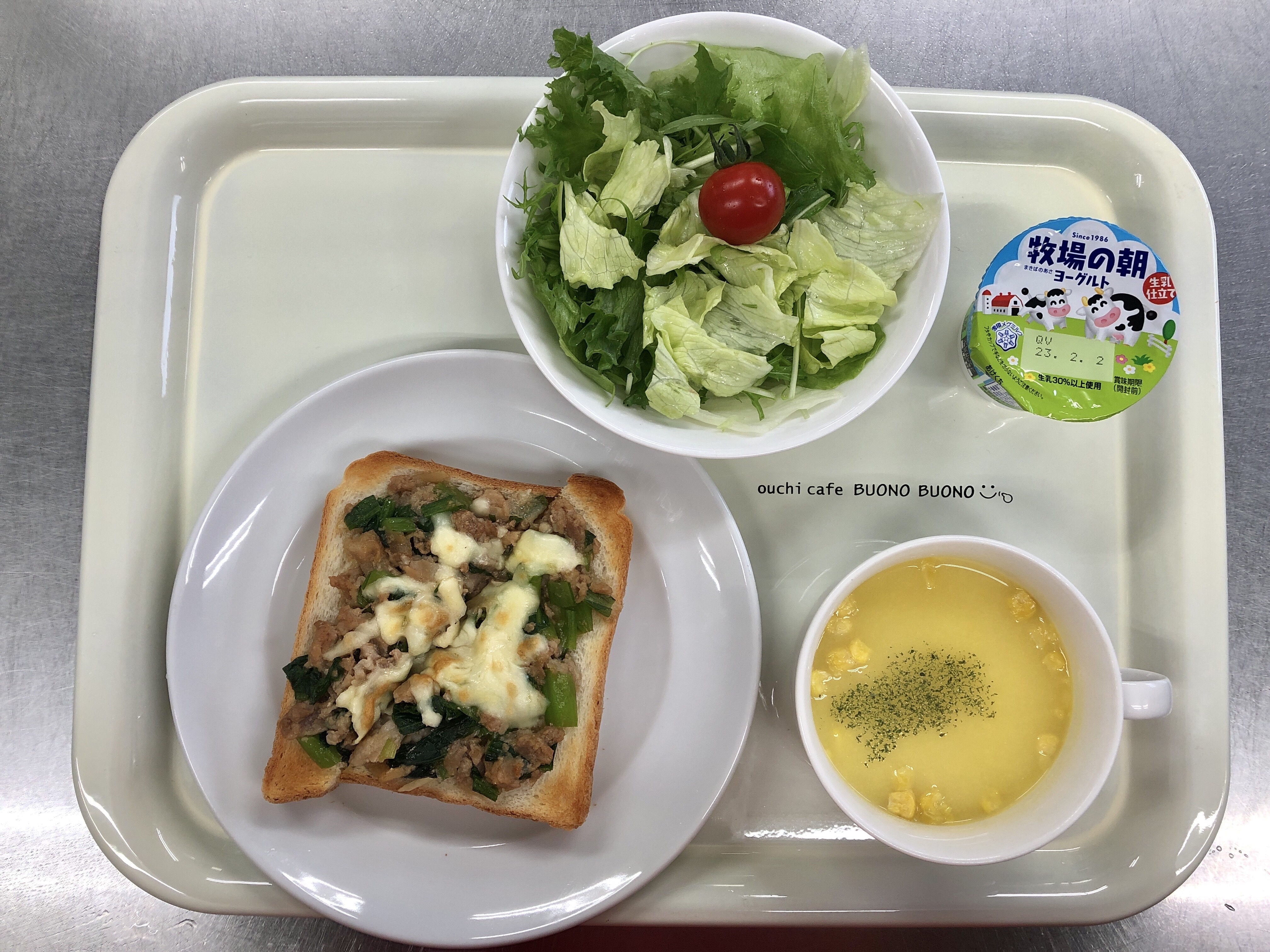・照り豚トースト ・グリーンサラダ ・ポタージュ ・ヨーグルト
