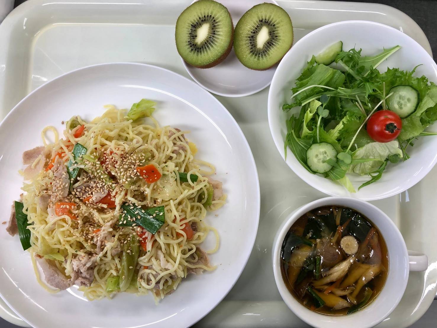 ・塩焼きそば ・グリーンサラダ ・くだもの ・スープ
