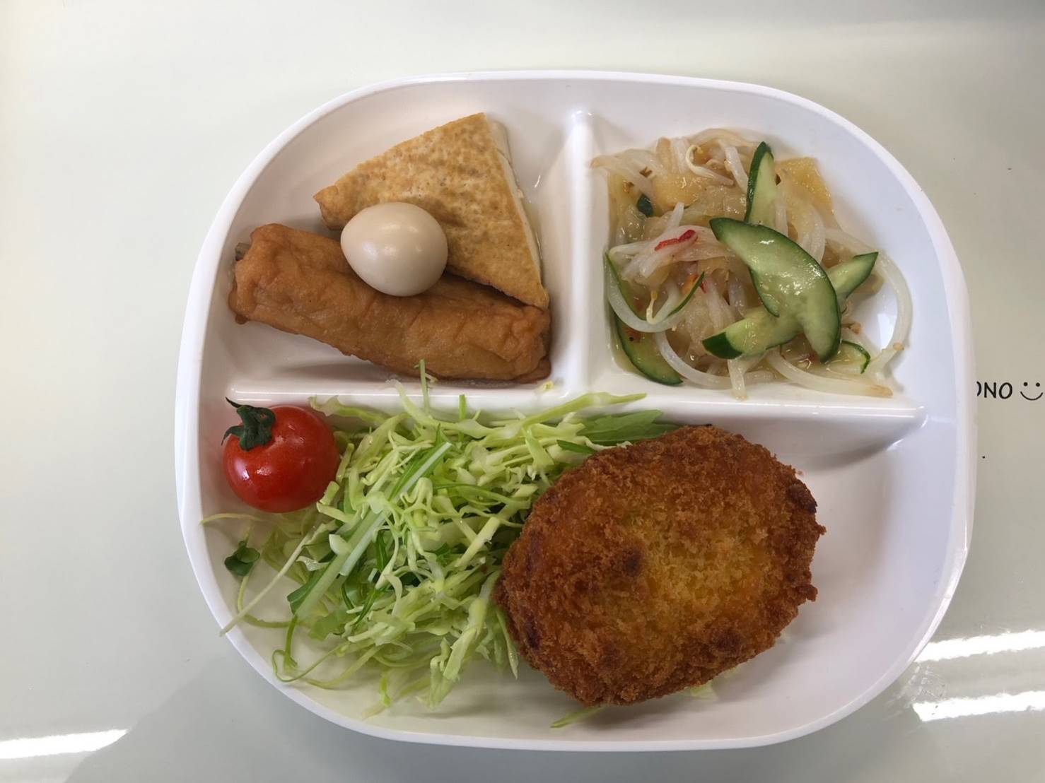 ・コロッケ ・中華くらげのサラダ ・煮物 ・ご飯 ・味噌汁