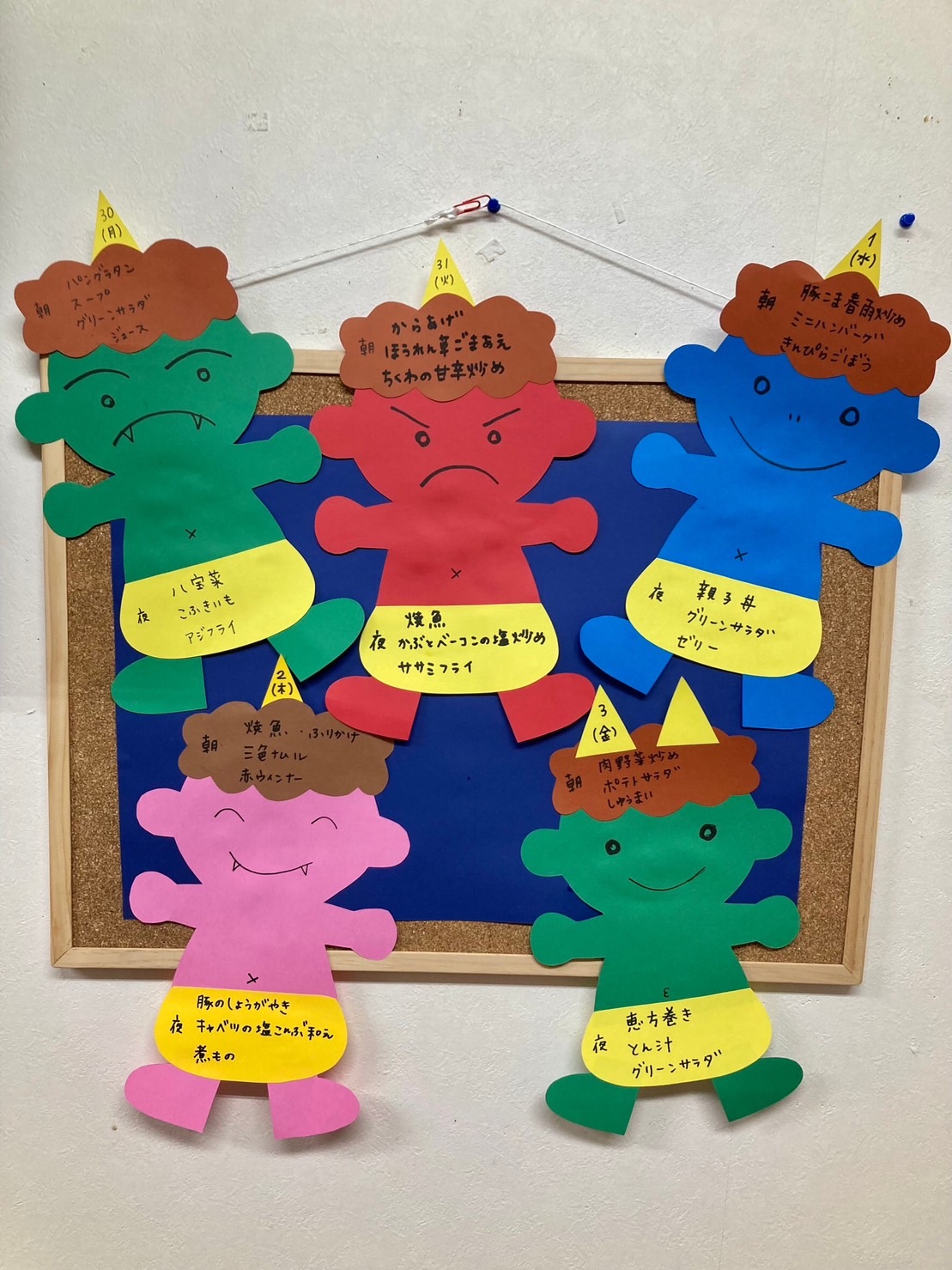 今週のメニュー表は、 カラフルな鬼さんたちが勢ぞろい😚