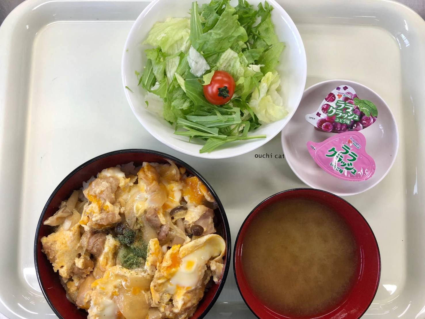 ・親子丼 ・グリーンサラダ ・ゼリー ・味噌汁