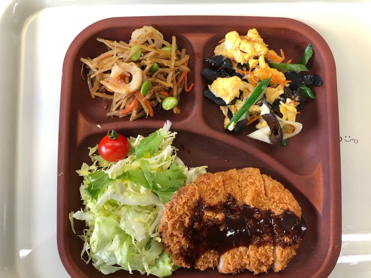 ・とんかつ ・きんぴらごぼう ・きくらげの玉子炒め ・ご飯 ・味噌汁