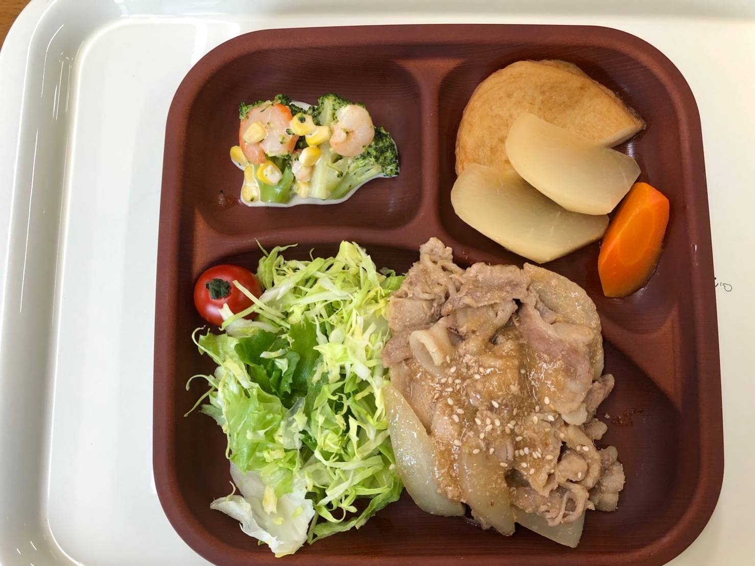 ・豚のしょうが焼き ・煮物 ・ブロッコリーサラダ ・ご飯 ・味噌汁