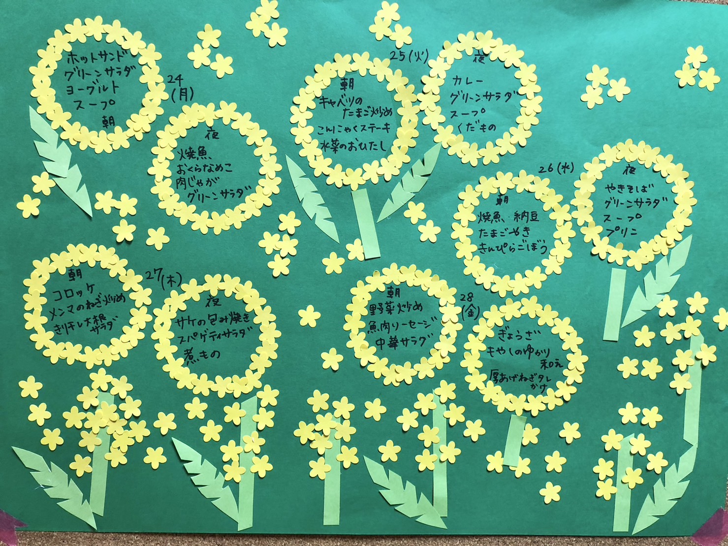 寮母さっちょんの季節感じるメニュー表。