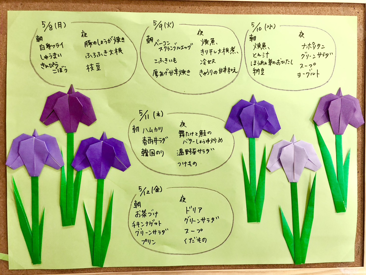 寮母さっちょんの季節感じるメニュー表。
