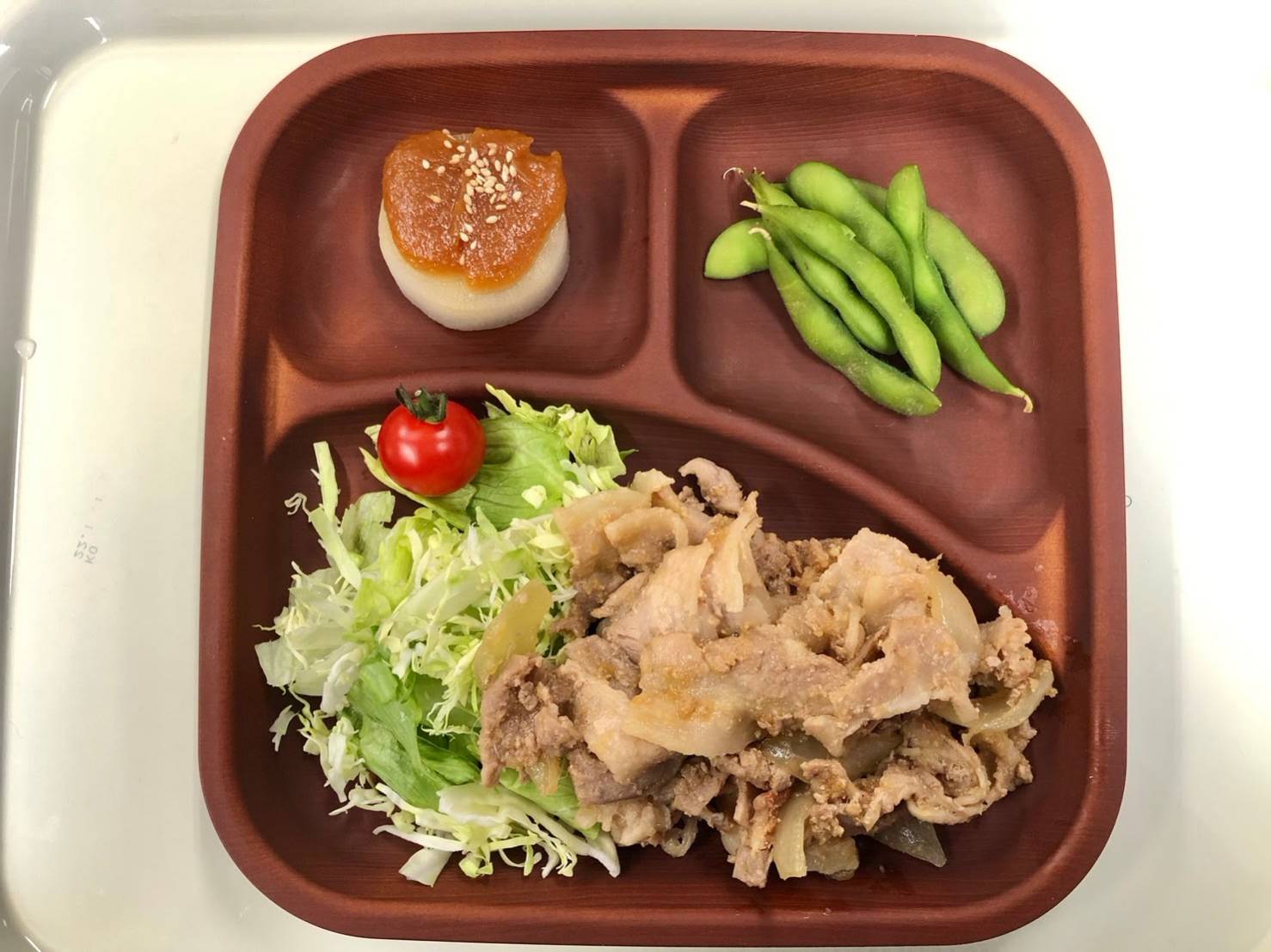 ・豚のしょうが焼き ・ふろふき大根 ・枝豆 ・ご飯 ・味噌汁