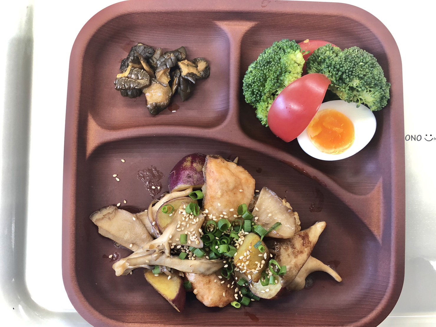 ・舞茸と鮭のバターしょうゆ炒め ・温野菜サラダ ・漬物 ・ご飯 ・味噌汁