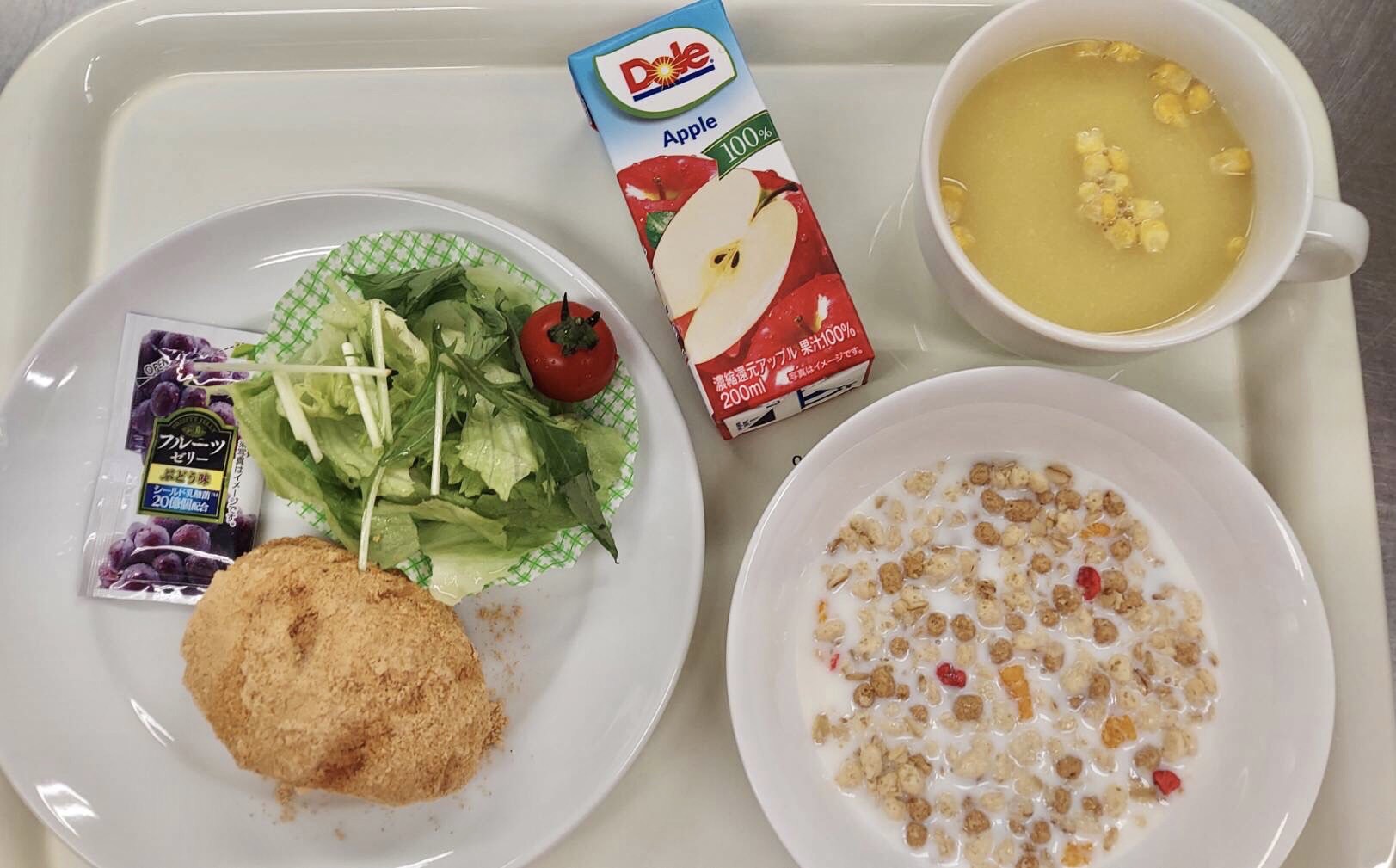 ・きなこ揚げパン ・フルーツグラノーラ ・サラダ ・スープ ・ジュース
