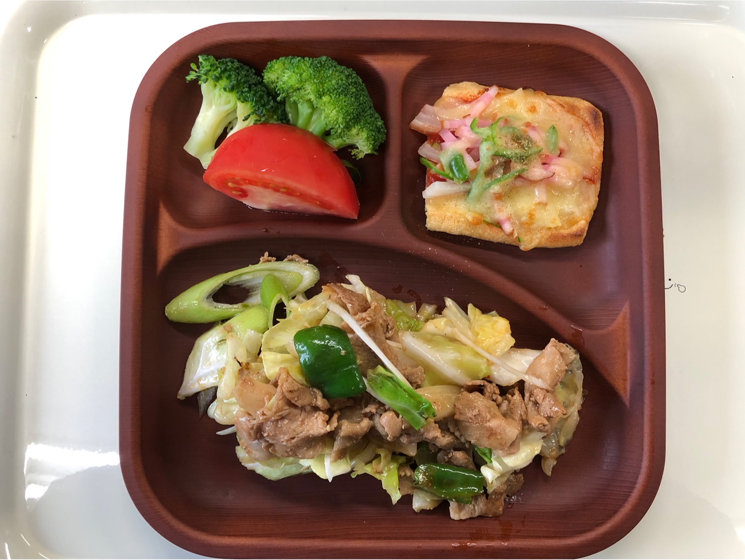 ・ホイコーロー ・うすあげピザ ・ブロッコリーサラダ ・ご飯 ・味噌汁