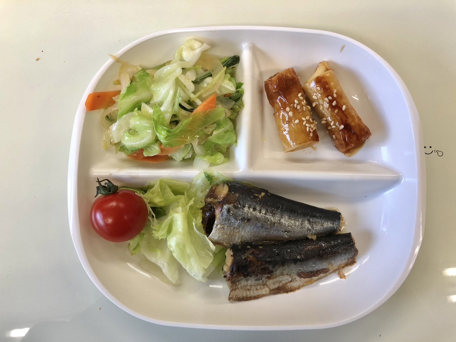 ・魚 ・ちくわチーズ ・野菜炒め ・ご飯 ・味噌汁