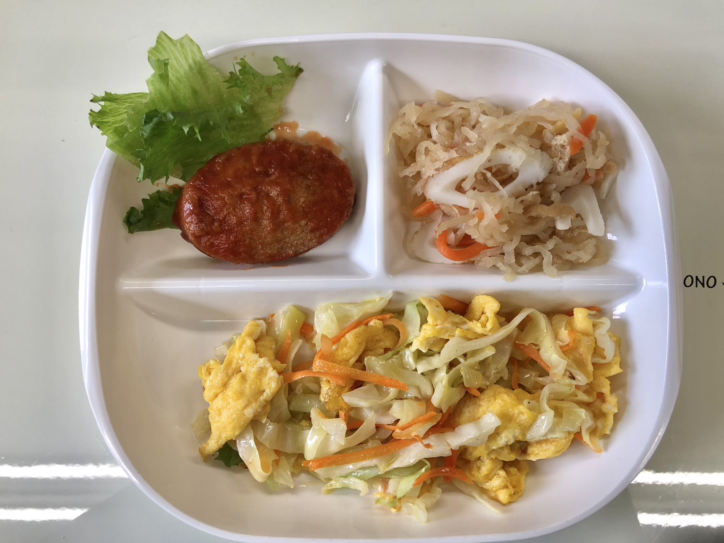 ・キャベツのたまご炒め ・ミニハンバーグ ・切り干し大根煮 ・ご飯 ・味噌汁