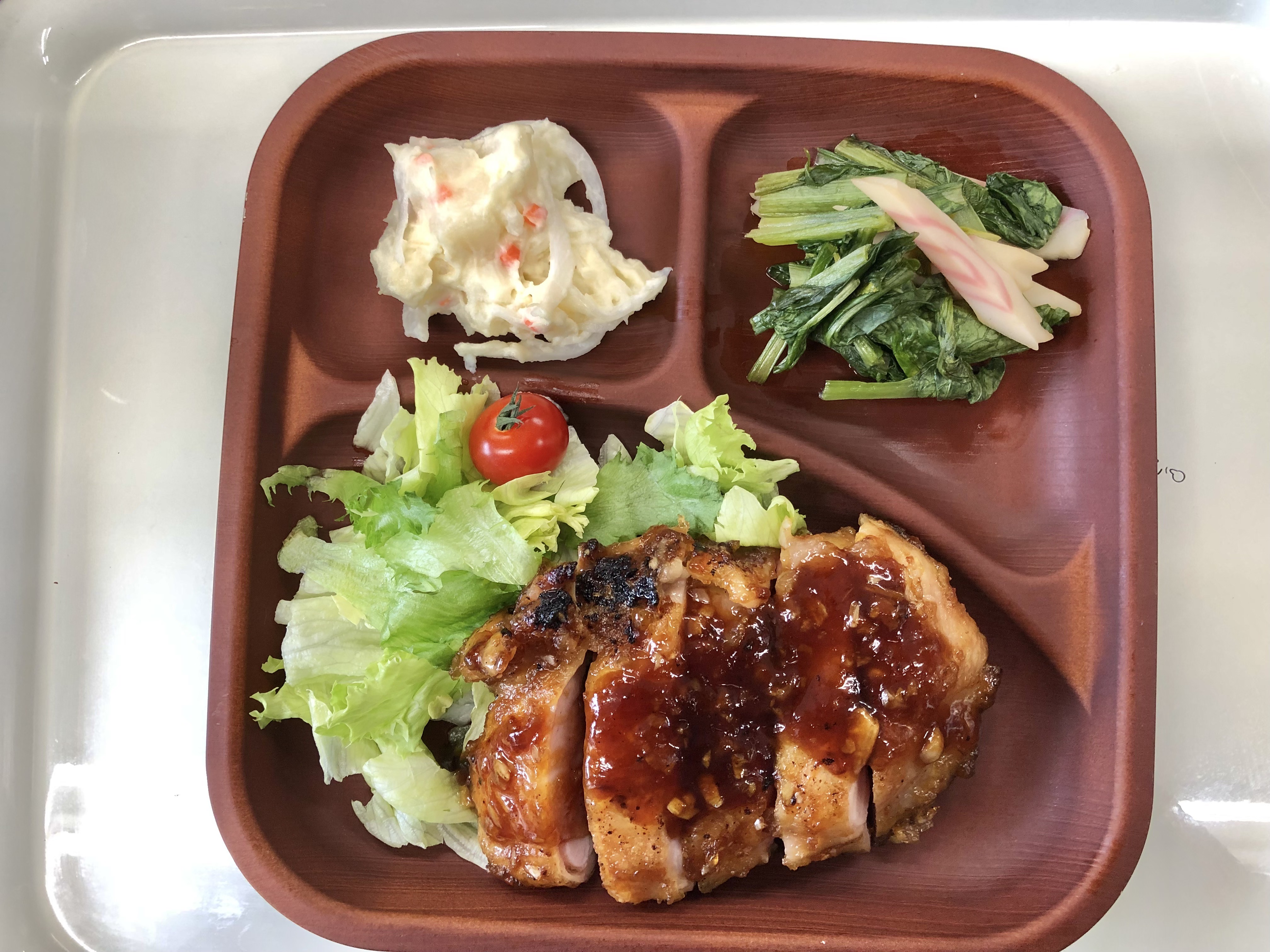 ・ガリバタチキン ・小松菜の煮びたし ・ポテトサラダ ・ご飯 ・味噌汁