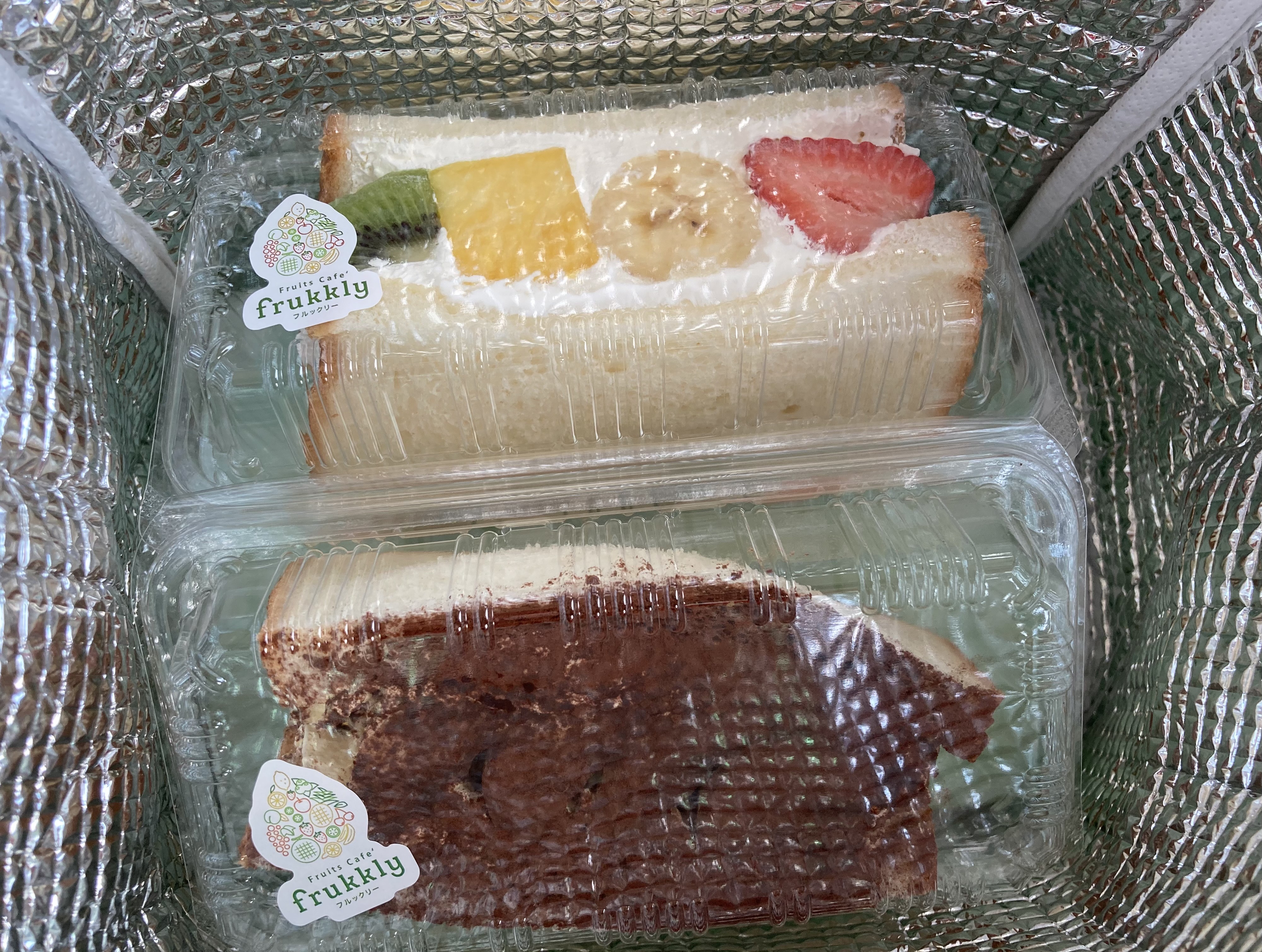 フルーツサンドにたっぷりのチョコパウダー😍