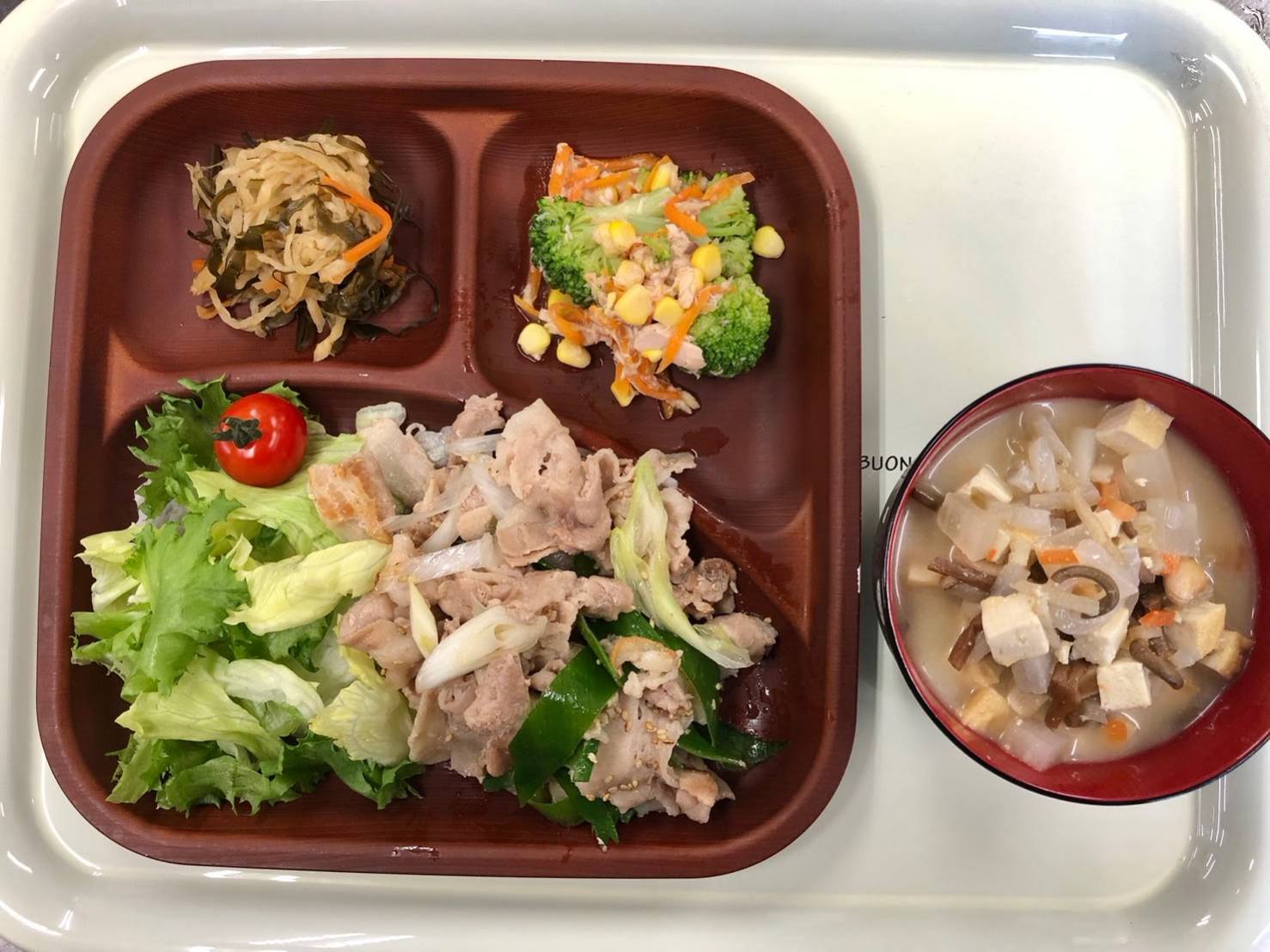 ・豚のねぎ塩炒め ・ブロッコリーのツナサラダ ・昆布と大根の和えもの ・ご飯 ・味噌汁