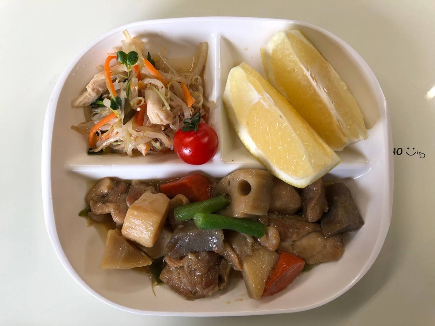 ・筑前煮 ・もやしサラダ ・グレープフルーツ ・ご飯 ・味噌汁