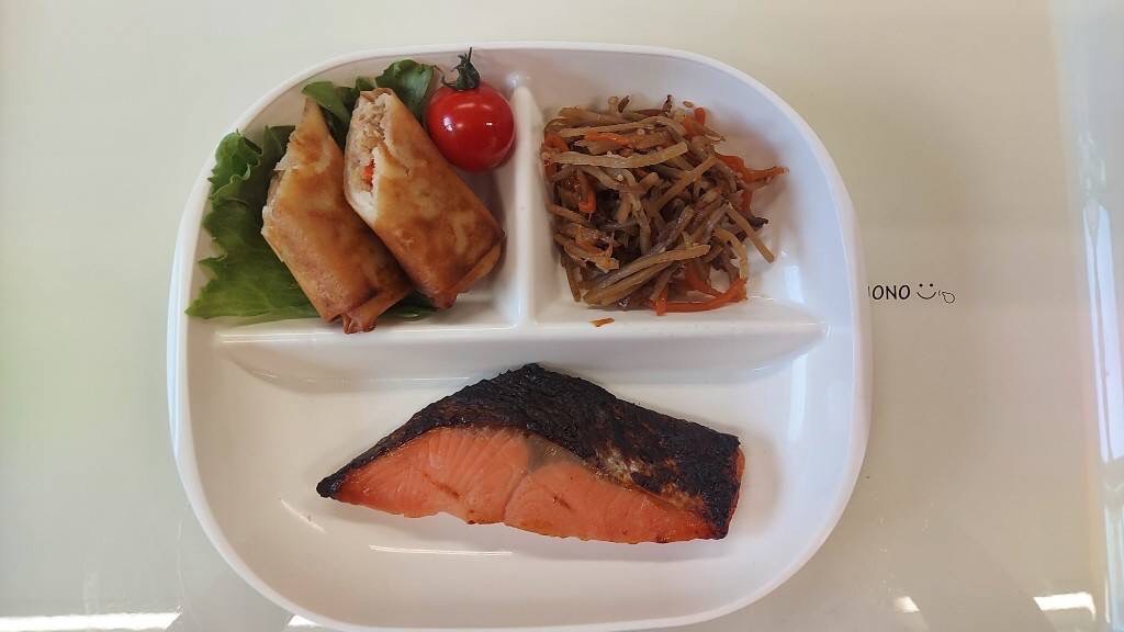 ・焼き魚 ・きんぴらごぼう ・春巻き ・ご飯 ・味噌汁