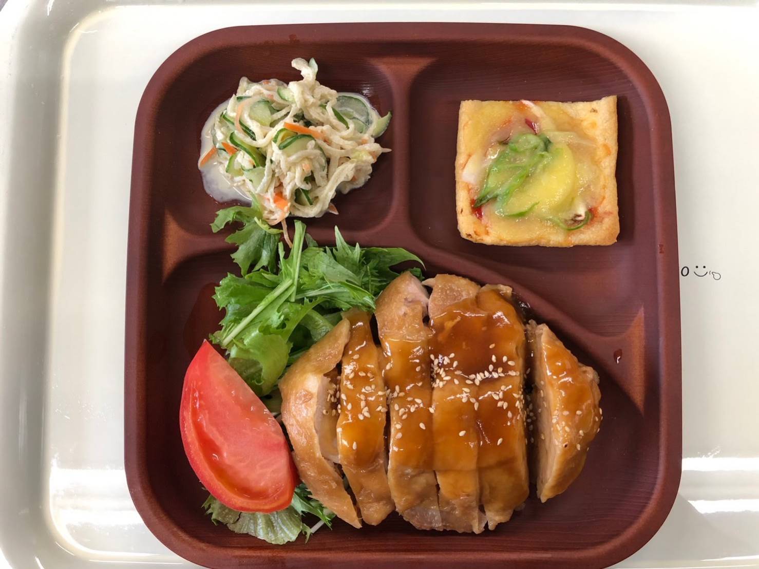 ・チキンの照り煮 ・うすあげピザ ・切り干し大根サラダ ・ご飯 ・味噌汁