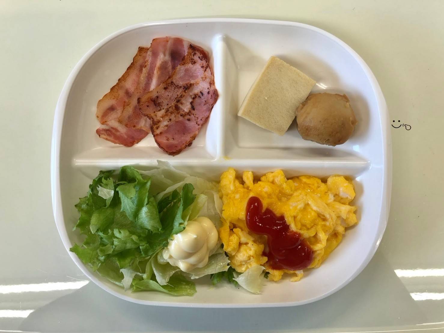 ・スクランブルエッグ ・ベーコン ・煮物 ・サラダ