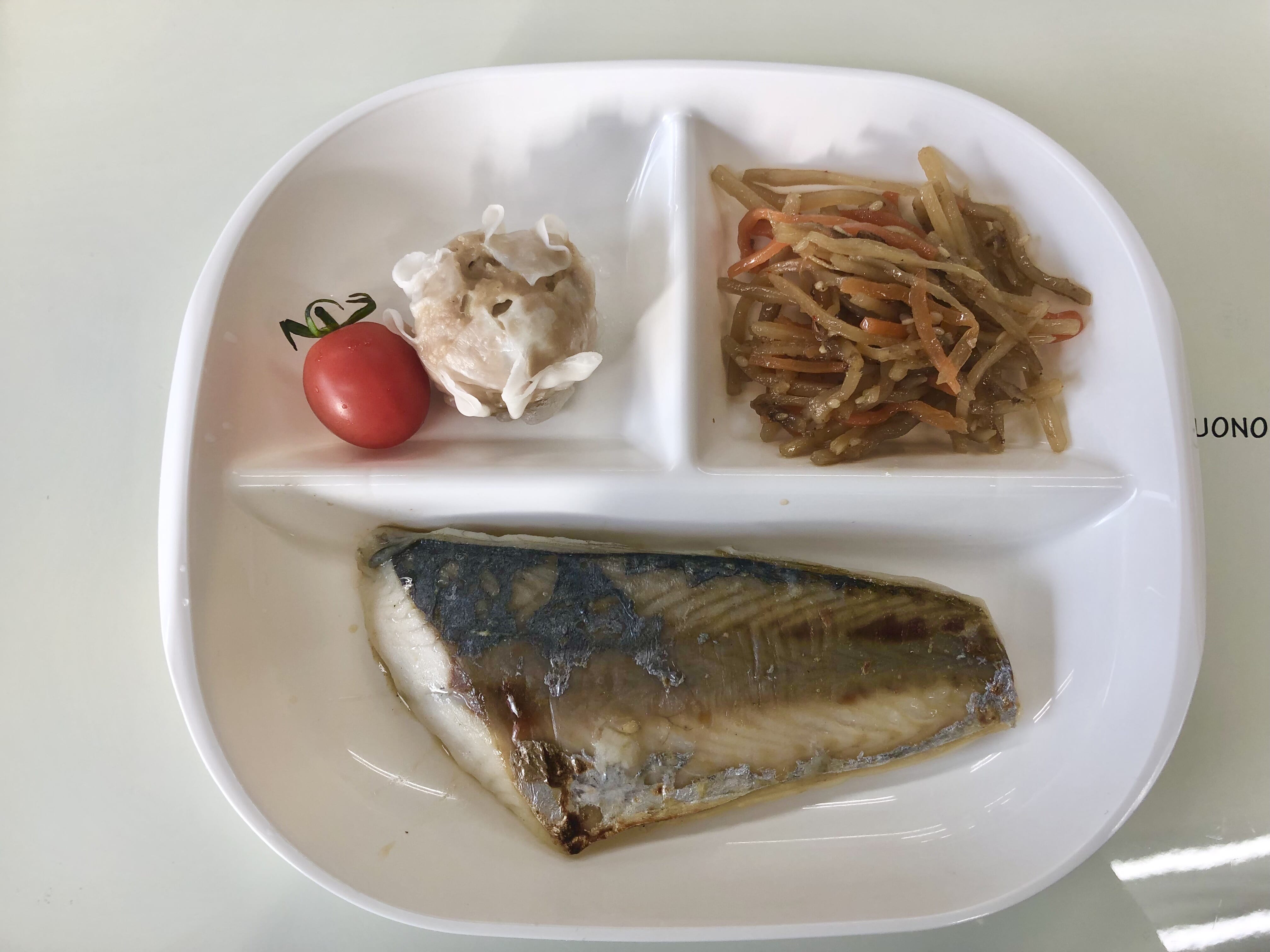 ・焼き魚 ・しゅうまい ・きんぴらごぼう ・ご飯 ・味噌汁