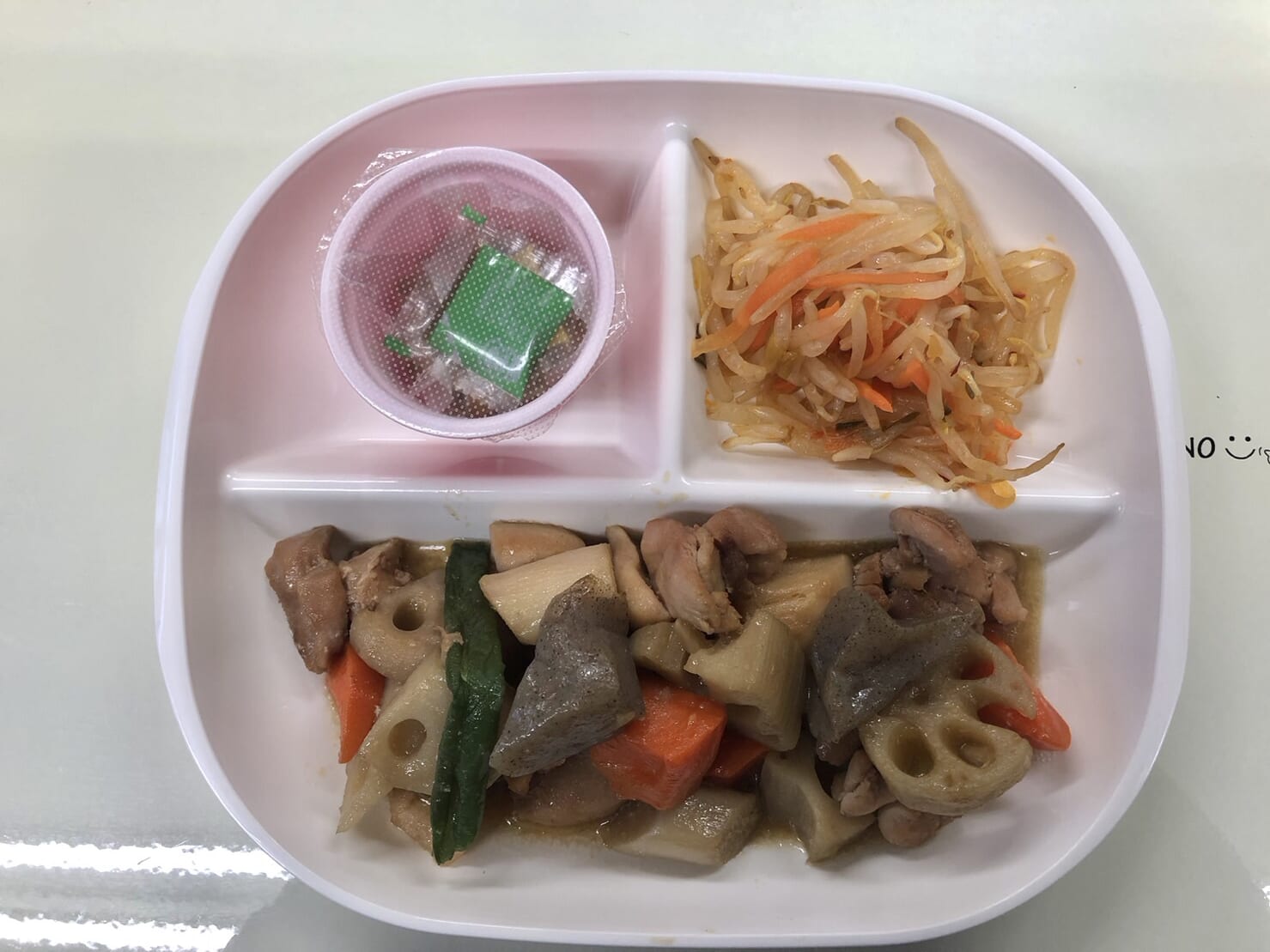 ・筑前煮 ・もやしのピリ辛和え ・納豆 ・ご飯 ・味噌汁