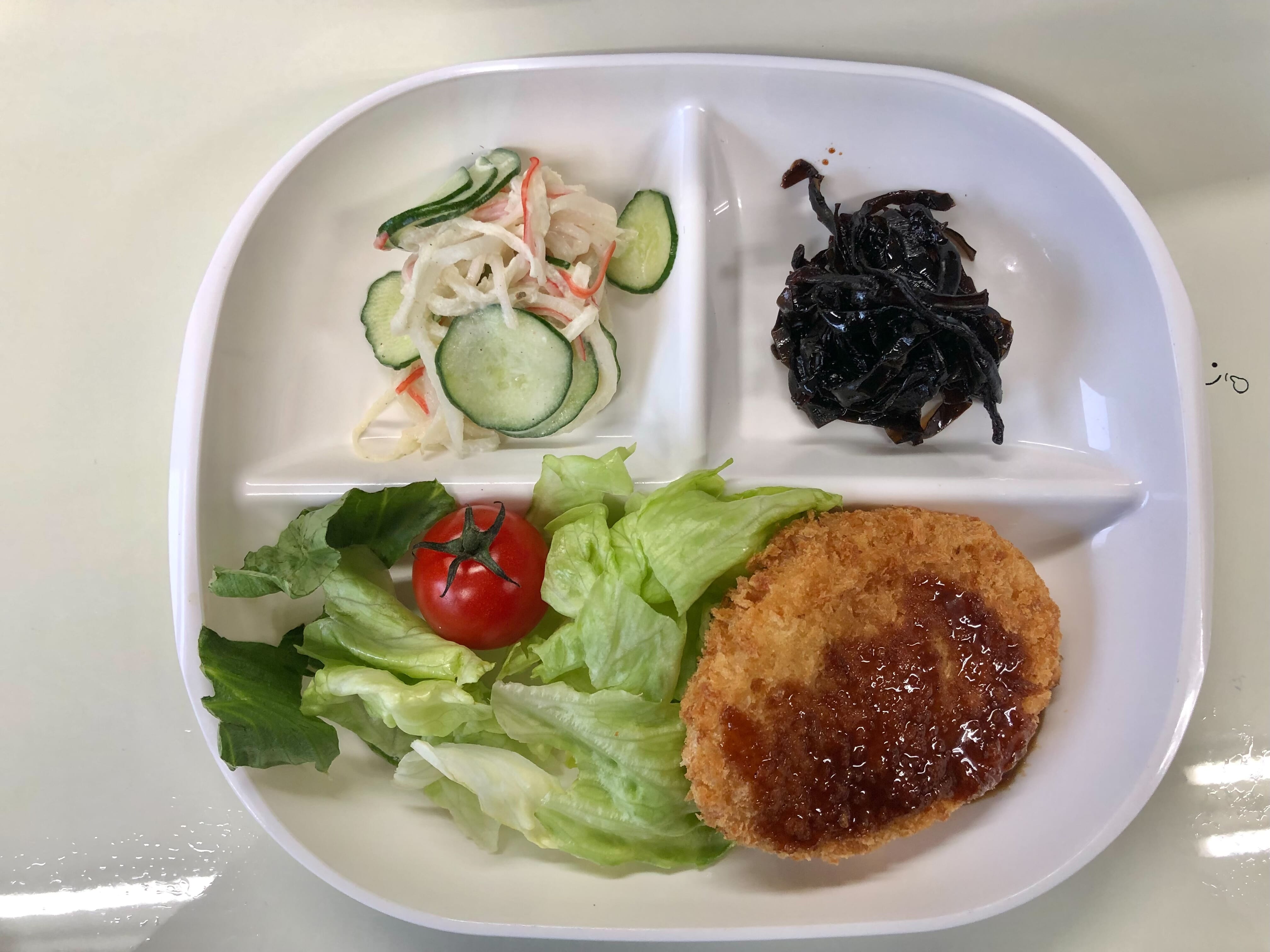 ・コロッケ ・切り干しサラダ ・昆布の佃煮 ・ご飯 ・味噌汁