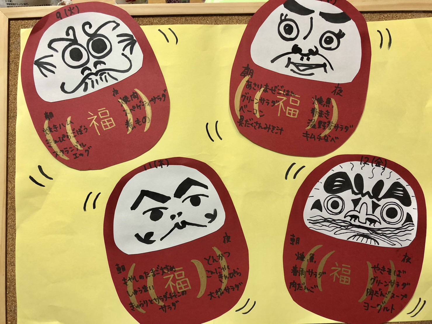 縁起のいいダルマのメニュー表で 今年は始まりましたね!😊
