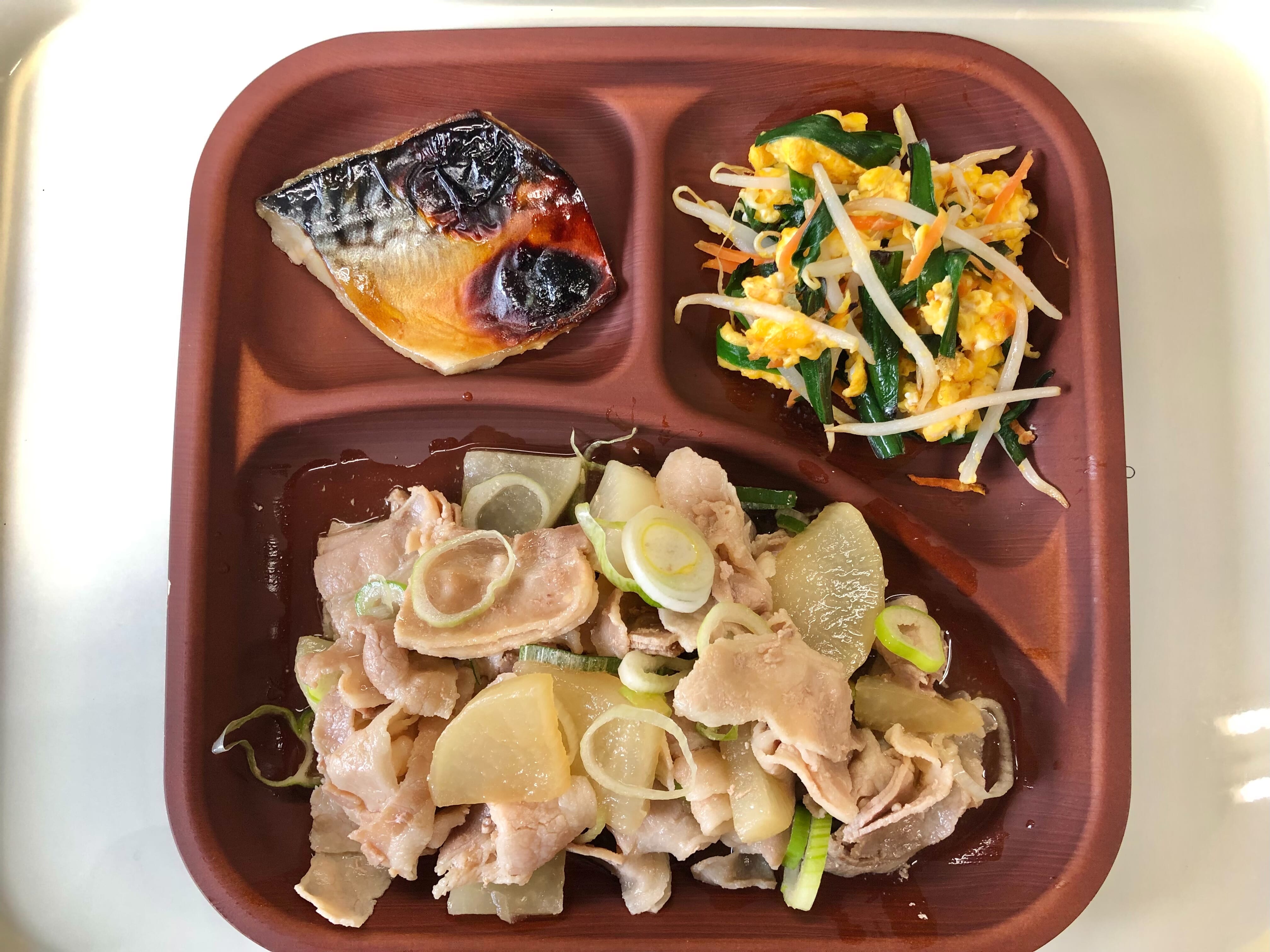 ・焼き魚 ・豚バラ大根 ・ニラ玉 ・ご飯 ・味噌汁