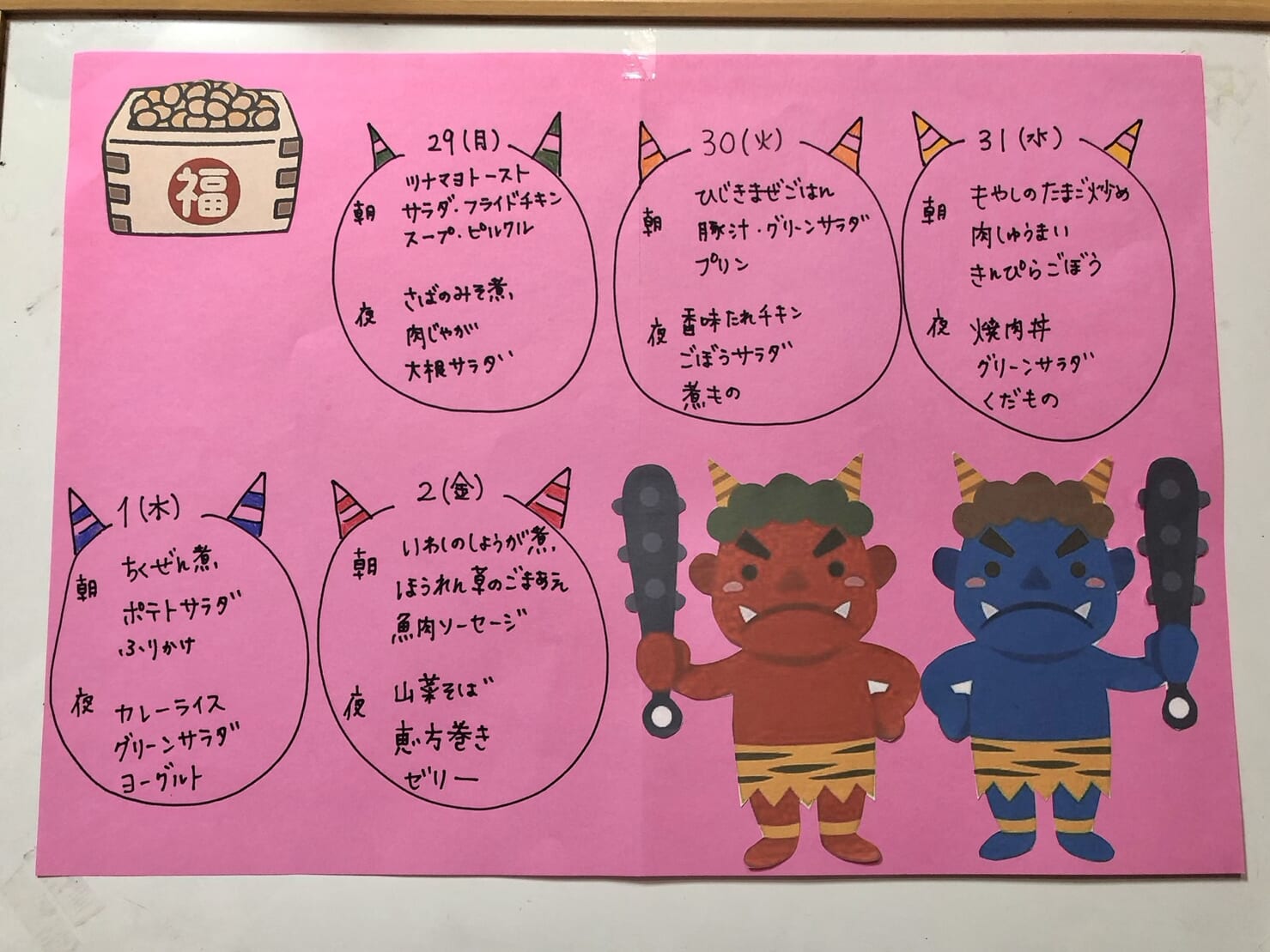 寮母さっちょんお手製の 今週のメニュー表は コチラ ↓↓↓