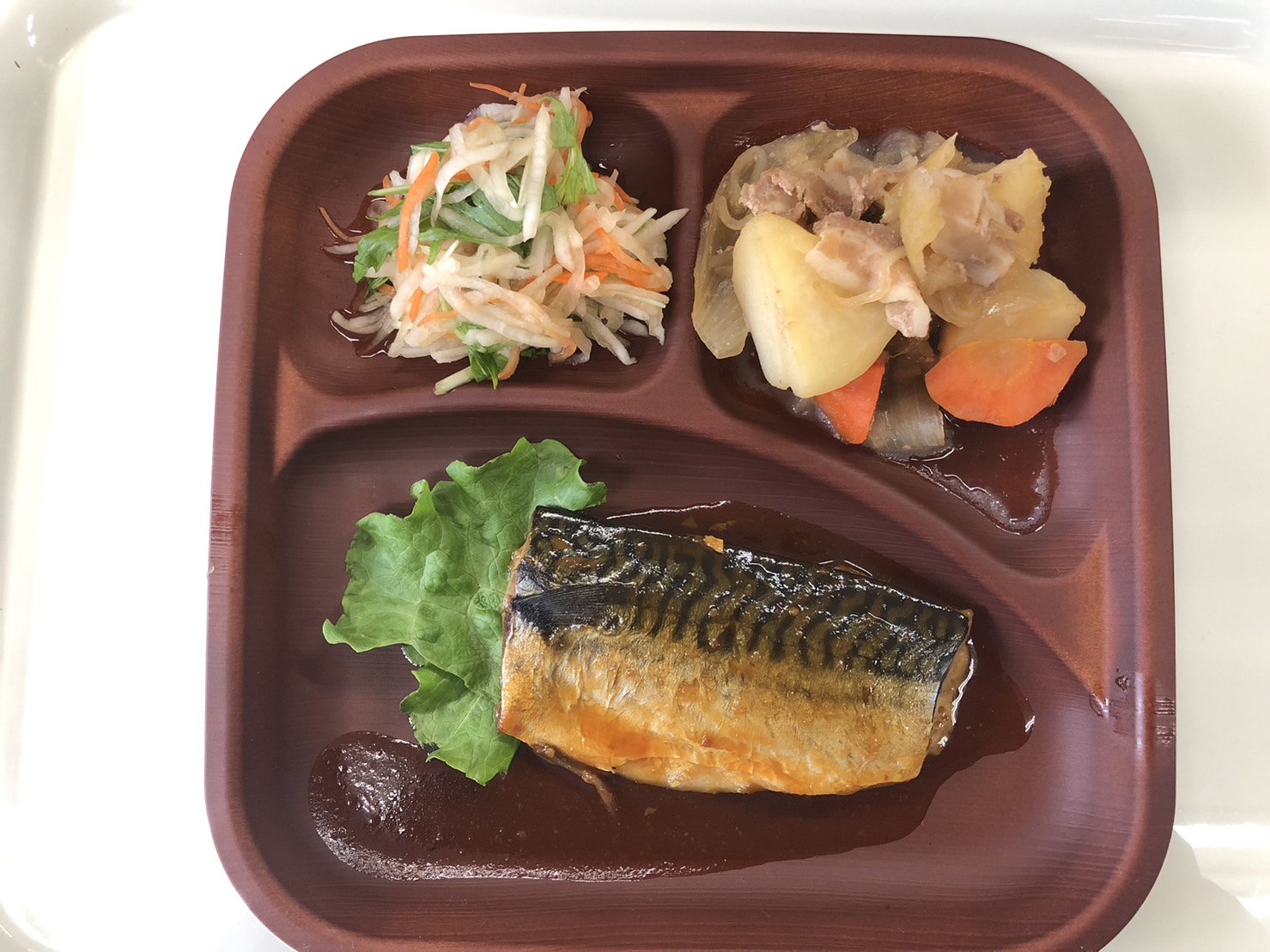 ・さばの味噌煮 ・肉じゃが ・大根サラダ ・ご飯 ・味噌汁