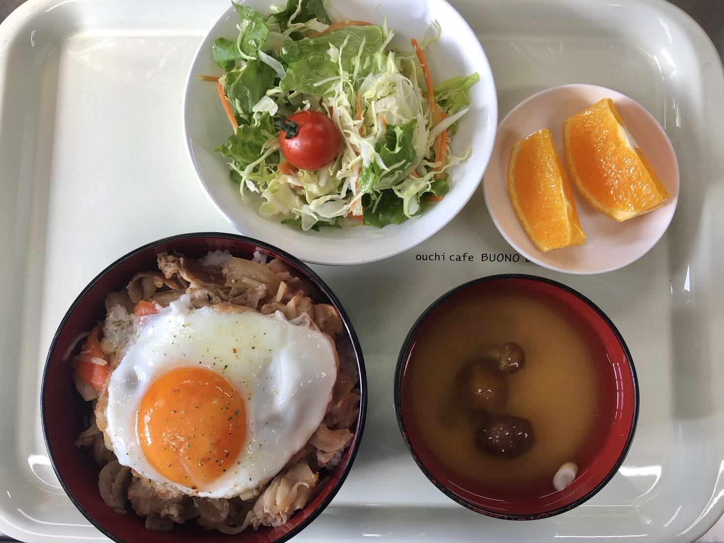 ・焼肉丼 ・グリーンサラダ ・くだもの ・味噌汁