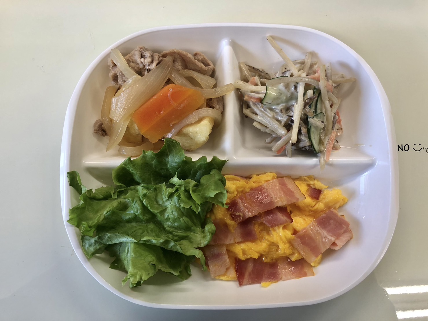 ・スクランブルエッグ ・肉じゃが ・ごぼうサラダ ・ご飯 ・味噌汁