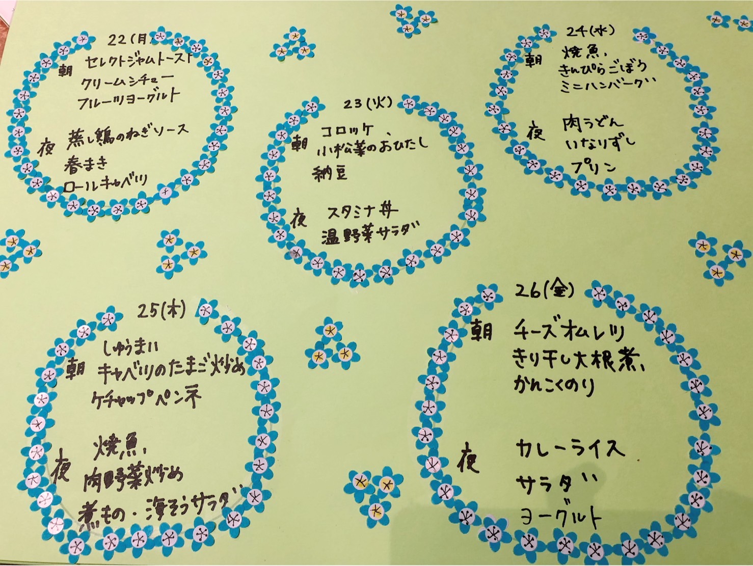 寮母さっちょんお手製の 今週のメニュー表は コチラ ↓↓↓