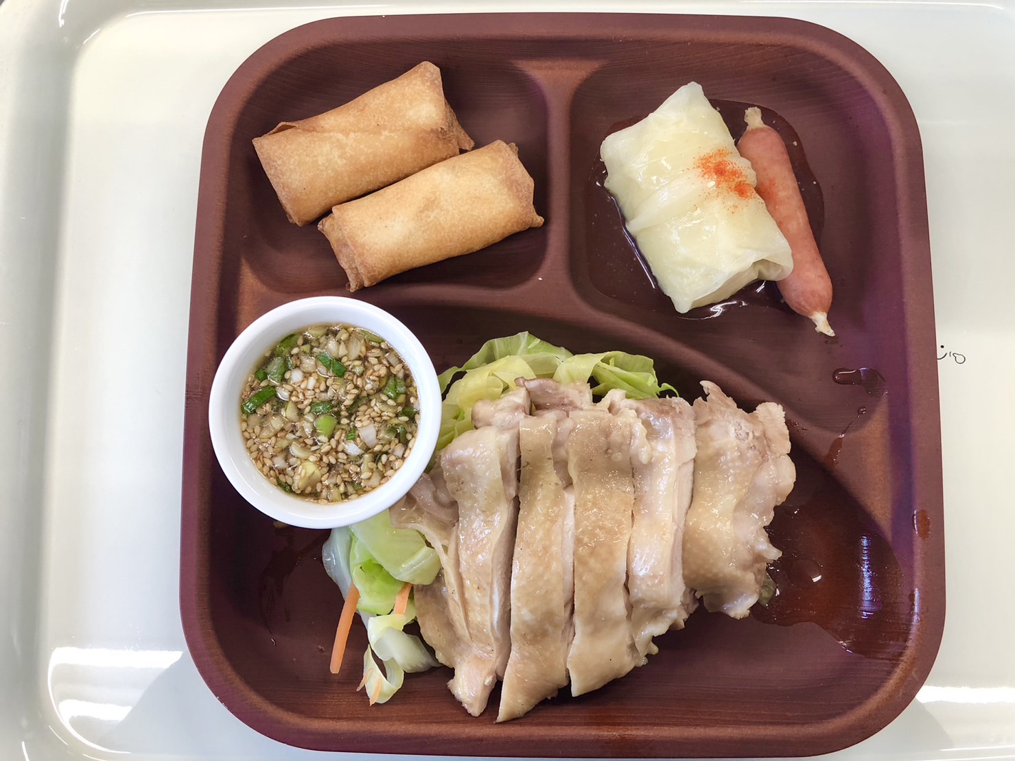 ・蒸し鶏のねぎソース ・春巻き ・ロールキャベツ ・ご飯 ・味噌汁