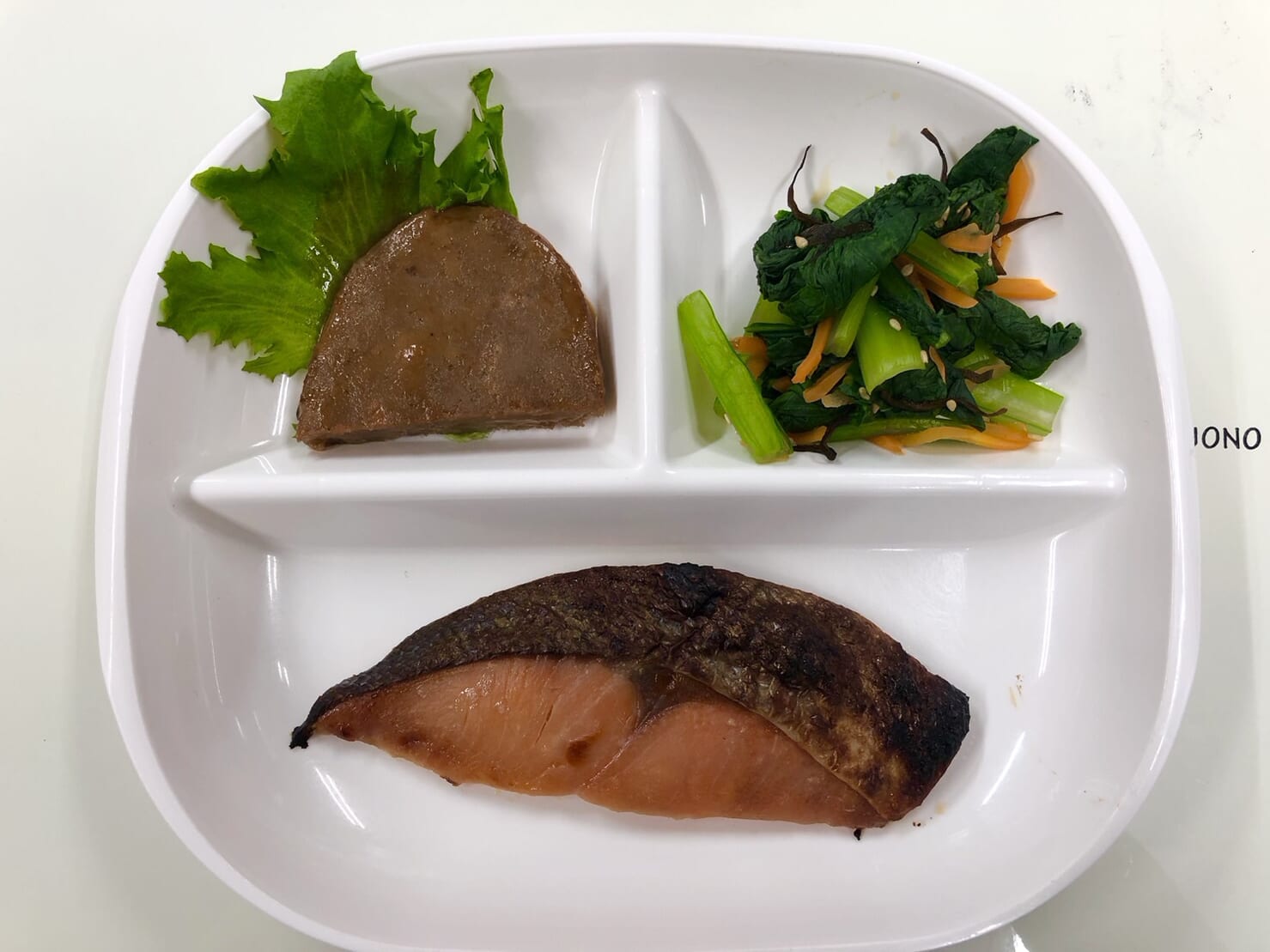 ・焼き魚 ・ミニハンバーグ ・小松菜のおひたし ・ご飯 ・味噌汁