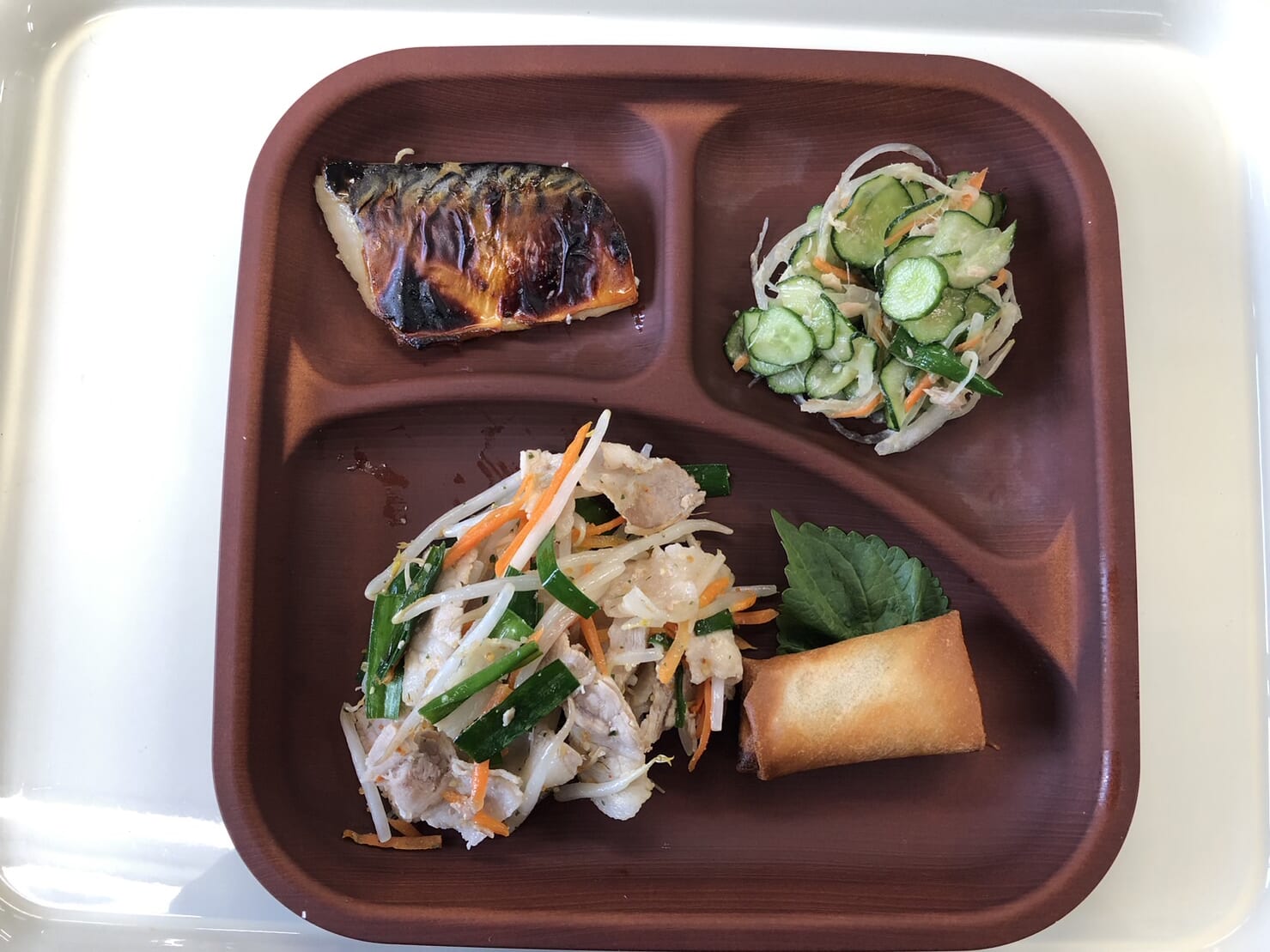 ・焼き魚 ・豚ニラもやし炒め ・きゅうりのツナサラダ ・ご飯 ・味噌汁