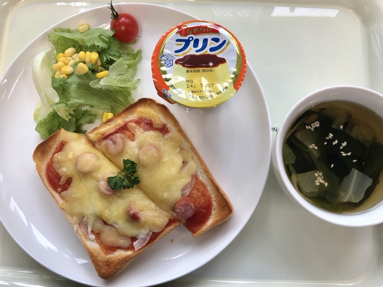 ・ピザトースト ・グリーンサラダ ・スープ ・プリン