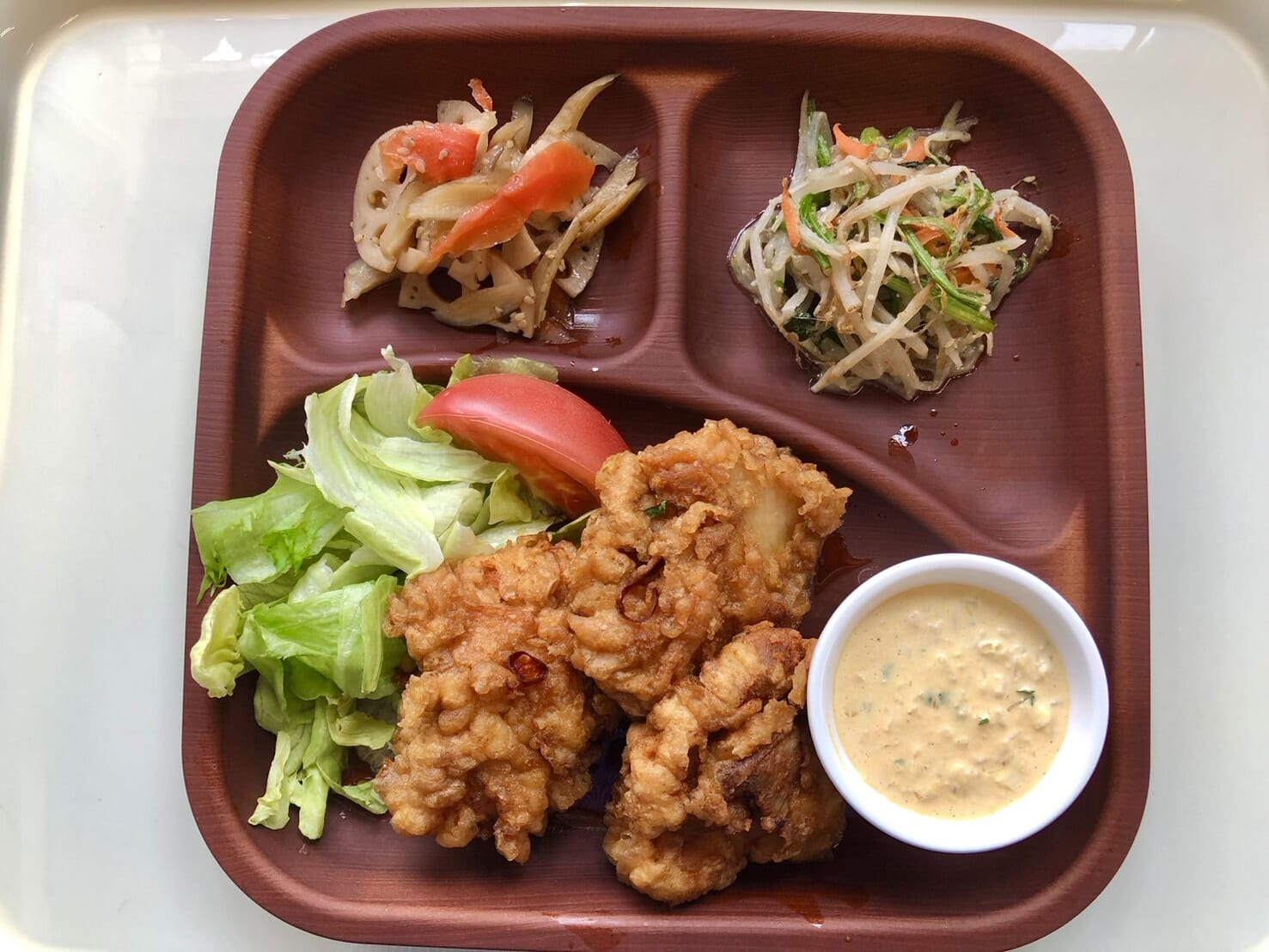 ・チキン南蛮 ・れんこんきんぴら ・もやしナムル ・ご飯 ・味噌汁