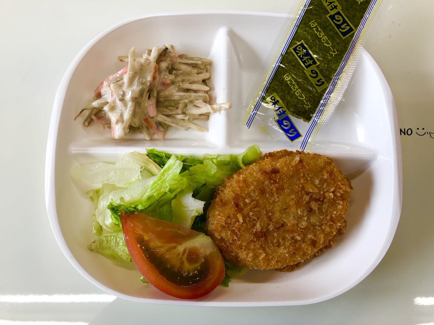 ・コロッケ ・ごぼうサラダ ・味のり ・ご飯 ・味噌汁