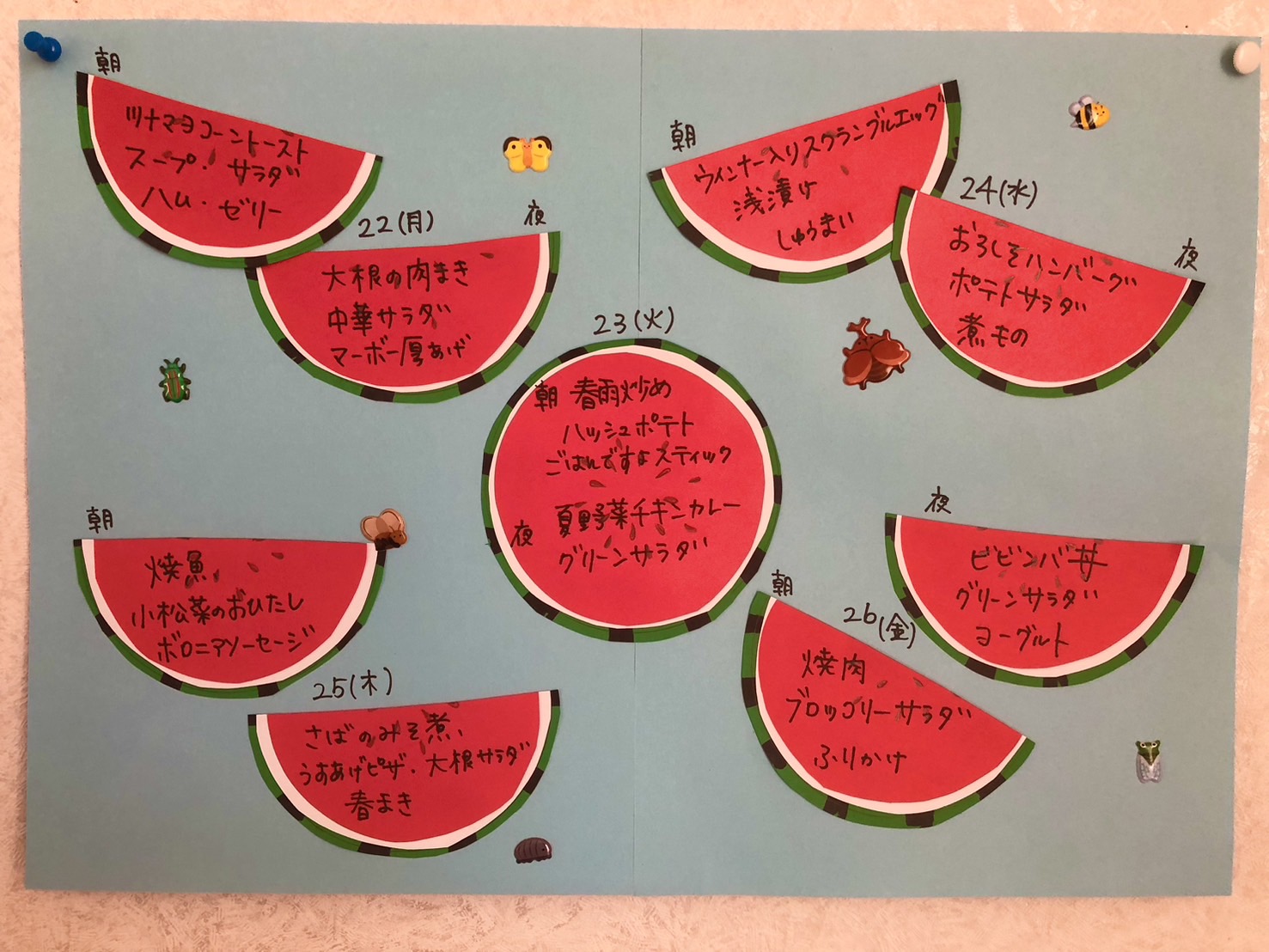 スイカのメニュー表には、 寮母さっちょんの夏に負けるな~という 秘密のメッセージがあるのかも~