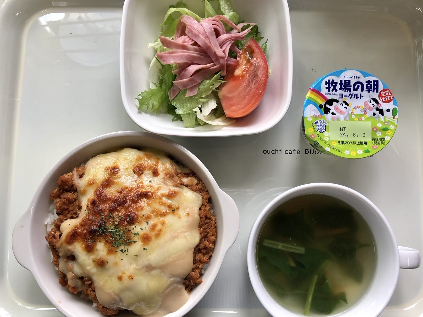 ・ミートソースドリア ・グリーンサラダ ・ヨーグルト ・スープ