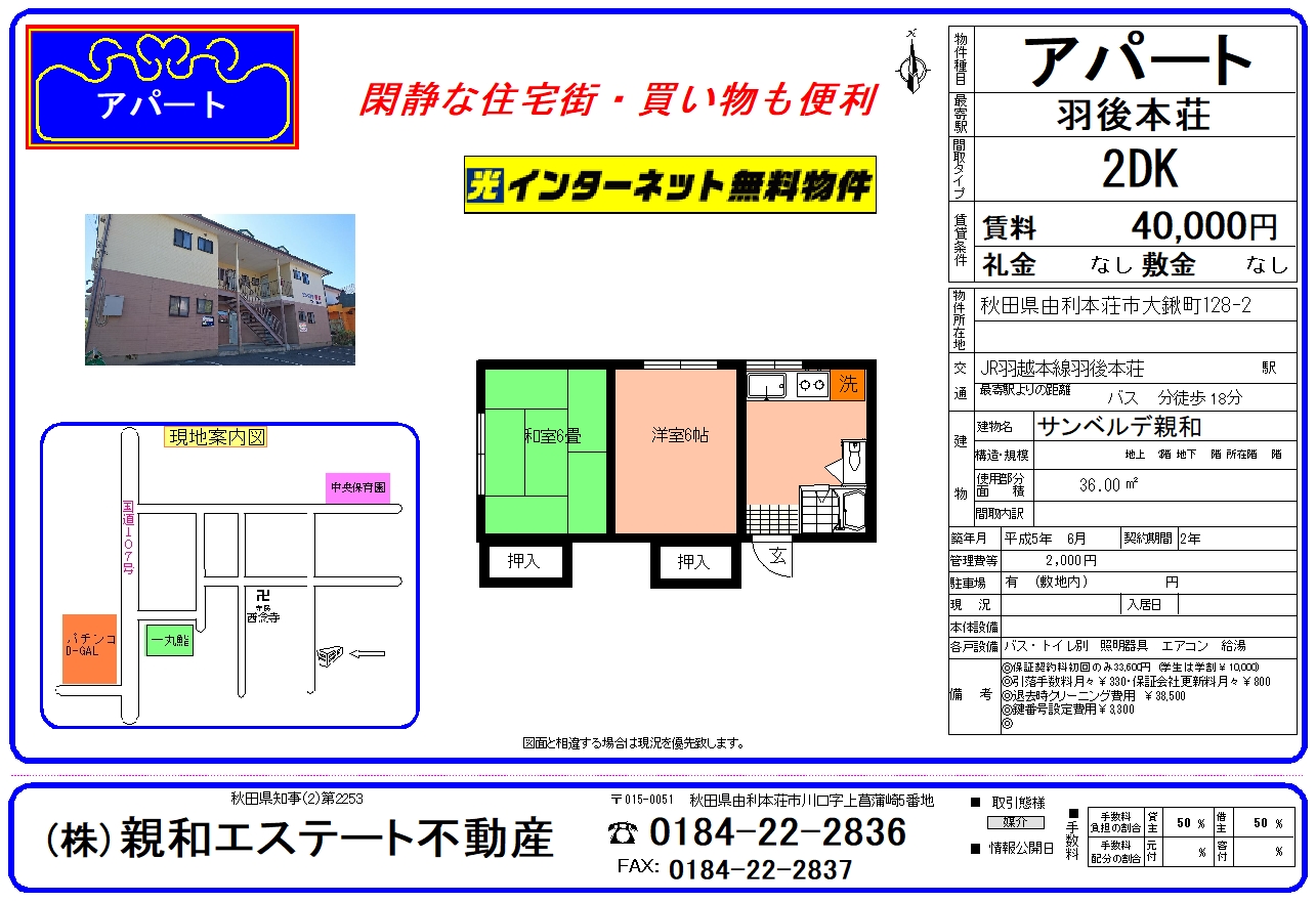 - 2DK/ 洋室6帖・和室6帖・キッチンユニットバス・トイレ・押入
